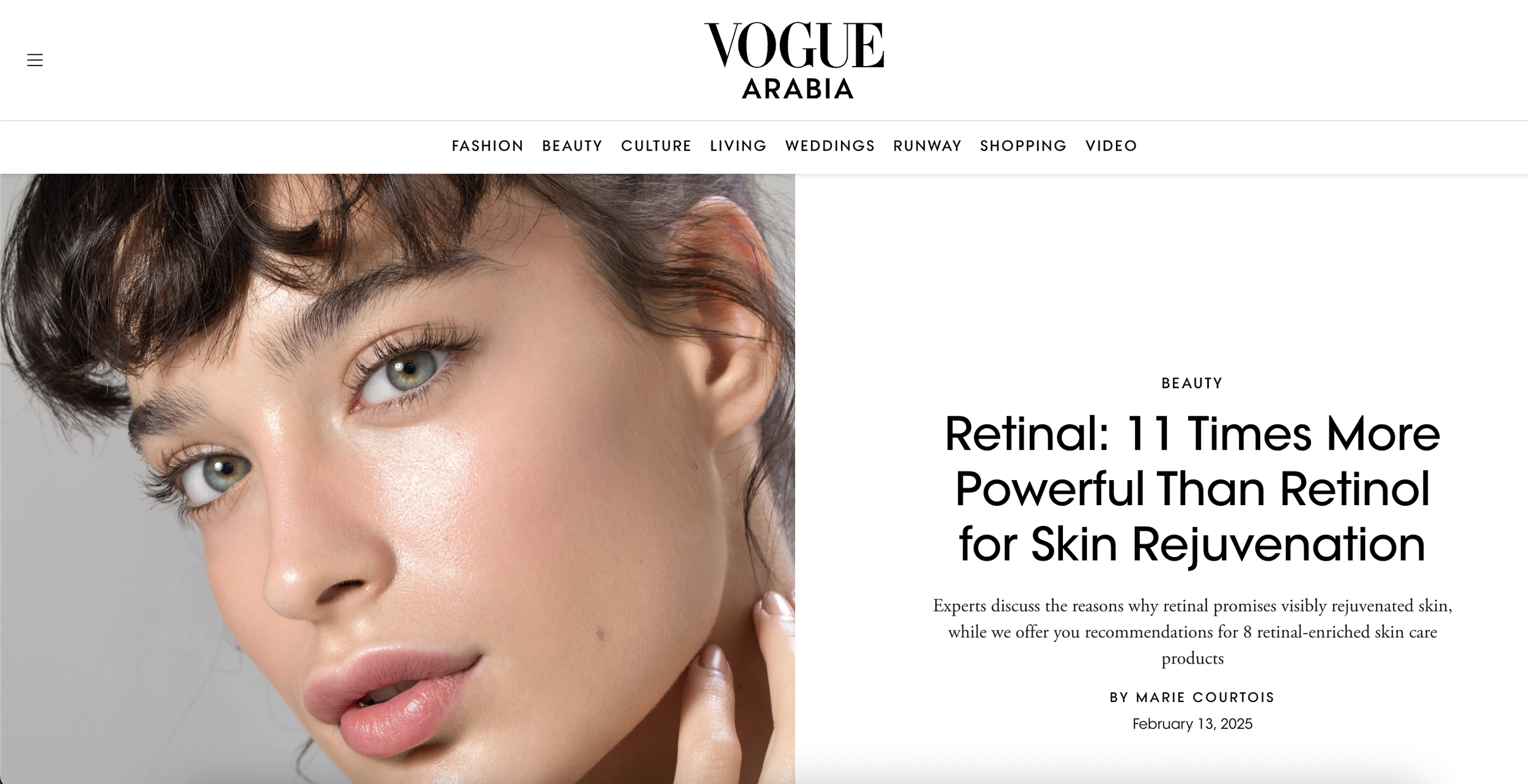 Vogue Arabia article title “Retinal: 11 Times More Powerful Than Retinol for Skin Rejuvenation”